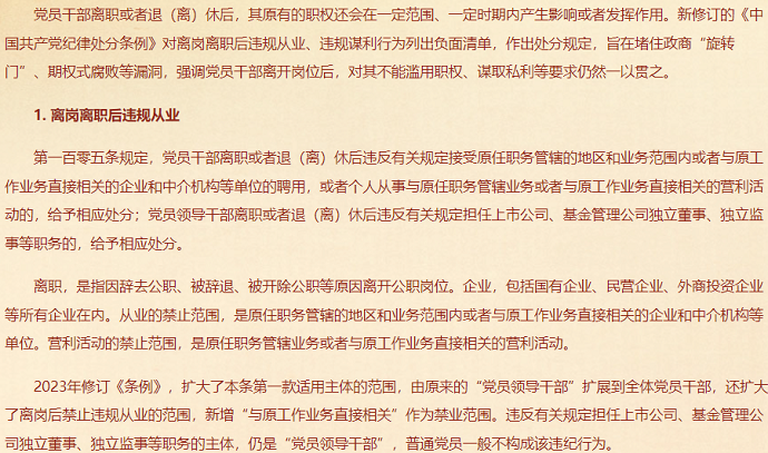 每日一課丨黨員干部離崗離職后違規從業(yè)、違規謀利的處分規定