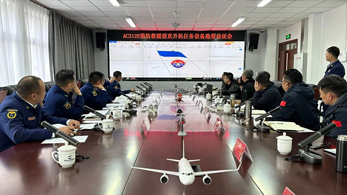 為確保我區首架消防救援型直升機正常交付使用,會(huì )上,與會(huì )人員從消防部門(mén)實(shí)戰需求出發(fā),就AC312E消防救援型直升機設備選型、技術(shù)參數、機身涂裝等方面進(jìn)行了認真研討、提出了建設性意見(jiàn)。