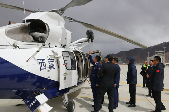 祁騰武指出,西藏各類(lèi)自然災害多發(fā)頻發(fā),消防應急救援任務(wù)繁重,要堅決貫徹落實(shí)黨中央和區黨委政府關(guān)于消防救援和通航產(chǎn)業(yè)發(fā)展的決策部署,堅持人民至上、生命至上,聚焦穩定、發(fā)展、生態(tài)、強邊“四件大事”,提高政治站位,立足職能定位,全力服務(wù)保障我區全任務(wù)、全地域、全要素應急救援任務(wù)開(kāi)展。一是要確保安全。消防應急救援的專(zhuān)業(yè)性很強、危險系數也很高,要樹(shù)牢安全發(fā)展理念,增強紅線(xiàn)意識,堅持底線(xiàn)思維,落實(shí)好安全生產(chǎn)責任制,強化設備安全性能測試,常態(tài)化開(kāi)展融合訓練,確保救援裝備安全運行。二是要深化合作。要立足航空消防救援方向,加強與自治區消防救援總隊、設備生產(chǎn)制造企業(yè)、科研機構的深度合作,統籌資源力量,創(chuàng )新工作模式,做好經(jīng)驗總結推廣,力爭把不斷涌現的應急救援新技術(shù)、新裝備運用到全區應急救援各領(lǐng)域。三是要加快落地。AC312E消防救援型直升機的引進(jìn)使用,區黨委政府高度關(guān)注,各族群眾翹首以盼,合作各方要積極對接、共同努力,科學(xué)謀劃預算編報、需求論證、裝備采購、國家航空器報備各項工作,確保盡早交付運行、盡早發(fā)揮效能,切實(shí)為維護全區各族人民群眾生命財產(chǎn)安全和經(jīng)濟社會(huì )高質(zhì)量發(fā)展保駕護航。