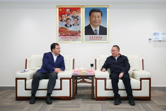 祁騰武對(duì)張旭陽(yáng)一行來(lái)訪(fǎng)表示歡迎,并介紹了西藏開(kāi)投集團(tuán)概況、生產(chǎn)經(jīng)營(yíng)和投資建設(shè)情況。他表示,光大銀行作為國(guó)內(nèi)領(lǐng)先的綜合性金融機(jī)構(gòu),在綠色金融、創(chuàng)新金融服務(wù)方面具有顯著優(yōu)勢(shì)。西藏開(kāi)投集團(tuán)與光大銀行已有良好的合作關(guān)系,期待與光大銀行在多層次、多領(lǐng)域開(kāi)展更加深入務(wù)實(shí)合作,歡迎光大銀行參與西藏開(kāi)投清潔能源開(kāi)發(fā)建設(shè),共同探索“科技賦能產(chǎn)業(yè)、金融助力發(fā)展”新路徑,助力地區(qū)經(jīng)濟(jì)社會(huì)發(fā)展和國(guó)家“雙碳”戰(zhàn)略目標(biāo)實(shí)現(xiàn)。
