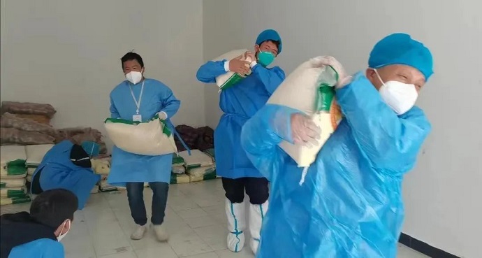 還來(lái)不及調整夜班后的身體疲倦,次日中午時(shí)分,志愿服務(wù)隊就收到了社區進(jìn)行國慶政府慰問(wèn)物資配送的通知。為保證社區居民能享受到最新鮮、及時(shí)的慰問(wèn)物資,隊員們重打前一晚的雞血,頂著(zhù)淅淅瀝瀝的小雨和感冒被感染的風(fēng)險,再次手抓肩扛,將包裝完好的合計約5噸的糧油水果送到了居民手中。匆忙的腳步、簡(jiǎn)單的交流,也讓社區百姓們漸漸讀懂了志愿服務(wù)隊的初心。