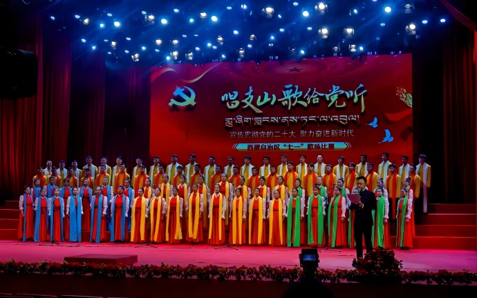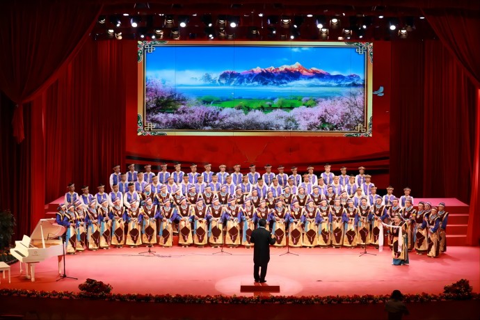 “朋友!你到過(guò)黃河嗎?你渡過(guò)黃河嗎?你還記得河上的船夫拼著(zhù)性命和驚濤駭浪搏戰的情景嗎?如果你已經(jīng)忘掉的話(huà),那么你聽(tīng)吧!”由58人組成的西藏開(kāi)投集團參賽隊以一曲《保衛黃河》,唱響了黨領(lǐng)導全國人民走過(guò)的風(fēng)雨歷程,唱出了戰勝敵人、奪取勝利的激情。
