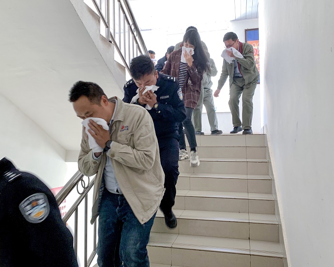 (演練火災現場(chǎng)逃離 劉式花攝)