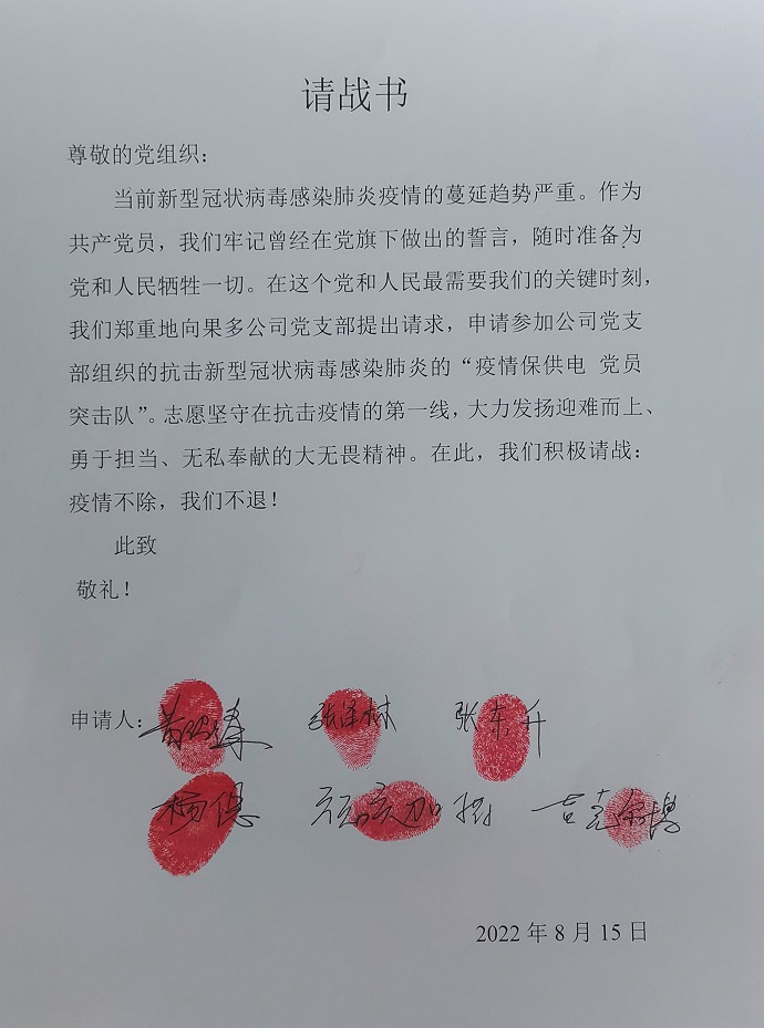 疫情發(fā)生以來(lái),果多水電公司黨員干部主動(dòng)請戰、晝夜堅守,高喊“首戰用我,用我必勝”口號,在疫情大戰大考中彰顯黨性光芒。不論是廠(chǎng)區門(mén)崗、檢測點(diǎn)位,還是電站中控室、設備間隔、大壩值班室,一面面“黨員先鋒隊”“黨員突擊隊”的旗幟迎風(fēng)飄揚,一個(gè)個(gè)“黨員先鋒崗”“黨員責任區”標牌熠熠生輝,一隊隊佩戴黨徽的黨員青年沖鋒在前。全體“果多人”以戰斗姿態(tài)沖鋒在一線(xiàn)、堅守在一線(xiàn)、奮戰在一線(xiàn),黨旗在果多水電站疫情防控和安全保電第一線(xiàn)高高飄揚。