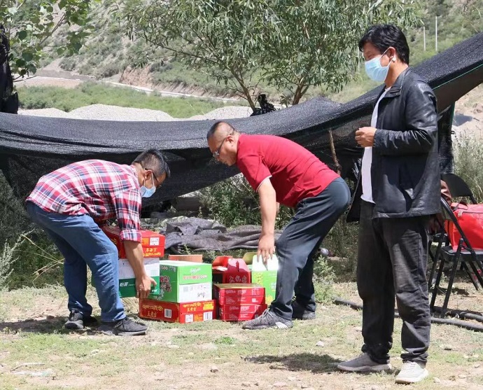 在察雅縣吉塘鎮值守點(diǎn),吉昌光伏公司與金河水電公司聯(lián)合捐贈了價(jià)值6700余元的抗疫物資,其中包括礦泉水、方便面、飲料、牛奶等,并向他們舍小家顧大家、勇于擔當的抗疫精神表示崇高的敬意和感謝。