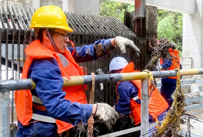 5月31日,金橋水電公司聞“汛”而動(dòng),迅速投入到攔污柵清污工作中。大家分工合作,相互配合,通過(guò)采取多種方法,經(jīng)過(guò)6個(gè)小時(shí)的辛勤勞作,清除了兩孔攔污柵全部堵塞物,確保了進(jìn)水口攔污柵“零”壓差,保障了金橋水電站的正常運行和發(fā)電安全,同時(shí)也為2024年公司安全度汛奠定了基礎。