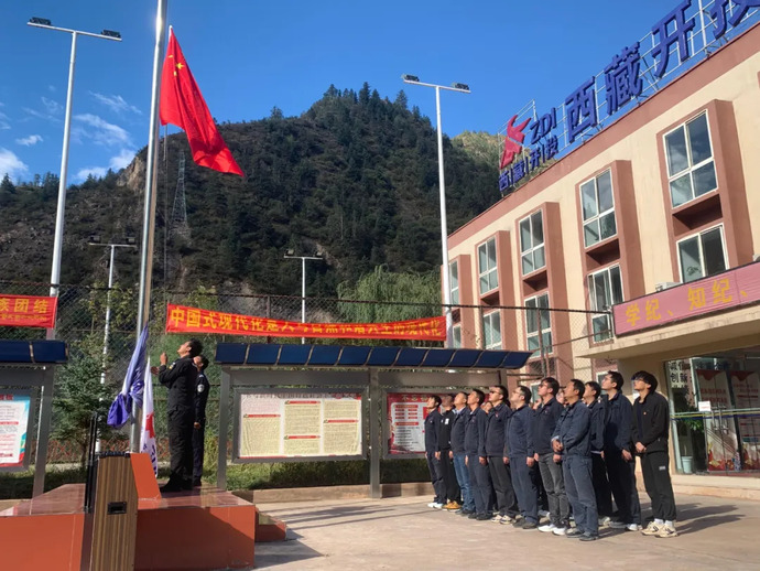 10月1日,果多水電公司全體干部職工在辦公樓前整齊列隊。隨著(zhù)莊嚴肅穆的音樂(lè )聲響起,升旗儀式正式開(kāi)始,鮮艷的五星紅旗冉冉升起,迎風(fēng)飄揚,全體干部職工面向國旗行注目禮,共同表達對祖國的忠誠和熱愛(ài)。