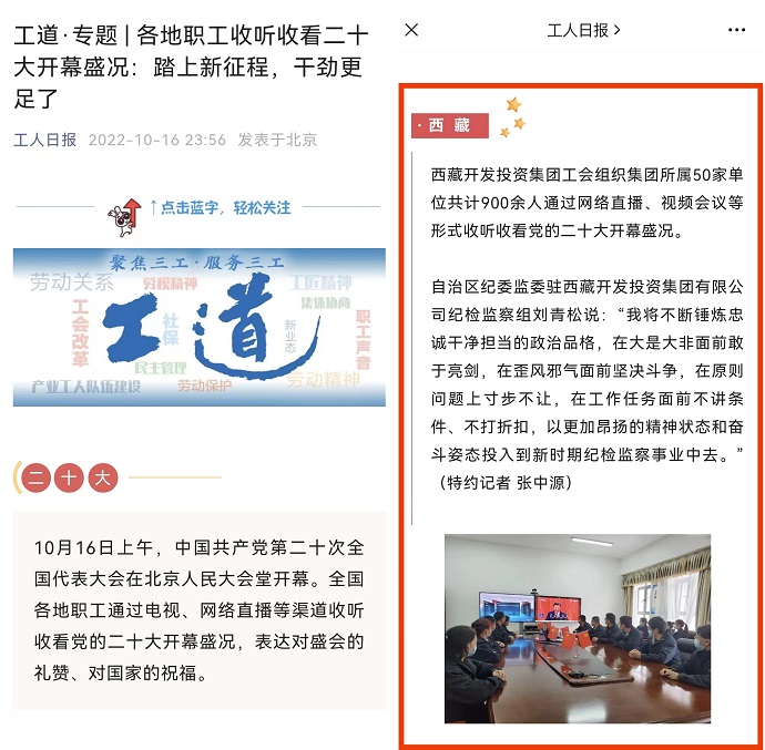 《工人日報》節選刊發(fā)集團公司干部職工收聽(tīng)收看黨的二十大開(kāi)幕盛況新聞信息