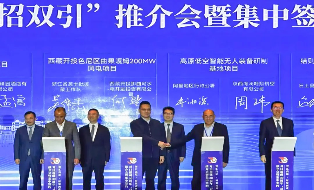 為貫徹落實(shí)自治區黨委政府決策部署,近日,區黨委組織部、自治區投資促進(jìn)局在拉薩市香格里拉大酒店宴會(huì )廳舉行對口援藏30周年“雙招雙引”推介會(huì )暨集中簽約儀式?;顒?dòng)由自治區人民政府副主席張利主持,自治區黨委常委、組織部部長(cháng)賴(lài)蛟致辭,那曲市政府辦、發(fā)展改革委、投資促進(jìn)局及相關(guān)領(lǐng)導出席。本次簽約儀式涉及清潔能源、特色農牧、綠色工業(yè)、現代服務(wù)、教育、高原生態(tài)、醫藥、農牧等幾大方面,將為西藏經(jīng)濟社會(huì )高質(zhì)量發(fā)展注入新的活力。西藏開(kāi)投集團黨委書(shū)記、董事長(cháng)祁騰武,那曲河水電公司相關(guān)人員參加簽約儀式。