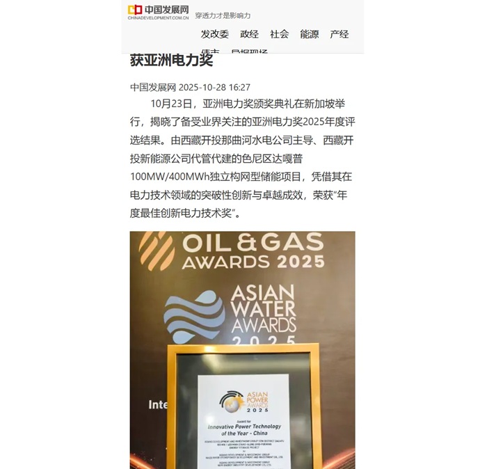 媒體報(bào)道丨色尼區(qū)達(dá)嘎普獨(dú)立構(gòu)網(wǎng)型儲能項(xiàng)目榮獲亞洲電力獎