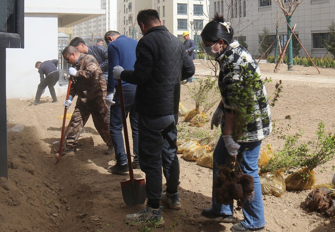 活動(dòng)現場(chǎng),在聽(tīng)取工作人員講解植樹(shù)注意事項后,大家三五一組、分工協(xié)作,有的揮鍬鏟土、填苗澆水,有的培土圍堰、澆水灌溉,還有的清掃垃圾、搬運雜物?,F場(chǎng)氣氛活躍、組織有序,呈現出一片熱火朝天的忙碌景象。每道工序一絲不茍、認真細致,展現了團結協(xié)作、奮發(fā)向上的精神風(fēng)貌。