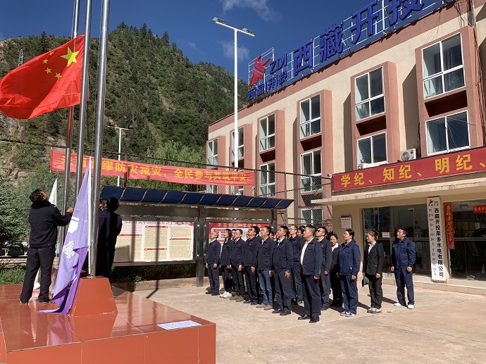 7月1日,迎著(zhù)和煦的朝陽(yáng),果多水電公司全體人員在辦公樓前整齊列隊。隨著(zhù)一聲洪亮的指令,升旗儀式正式開(kāi)始,伴隨著(zhù)高亢激昂的國歌聲,鮮艷的五星紅旗冉冉升起,迎風(fēng)飄揚,全體人員面向國旗行注目禮。大家心潮澎湃、豪情滿(mǎn)懷,共同慶祝中國共產(chǎn)黨成立103周年,共同表達對黨、對祖國的忠誠和熱愛(ài)。