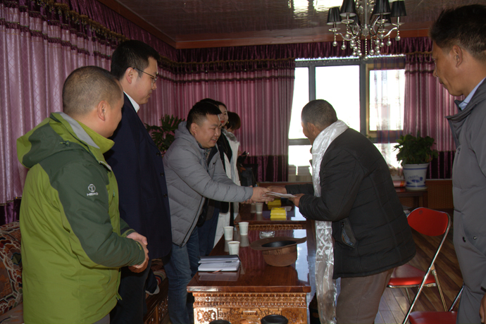 柳梧村村委達瓦書(shū)記對大家的到來(lái)表示熱烈的歡迎,對西藏開(kāi)投集團組織開(kāi)展這項工作表示贊賞。他說(shuō):“西藏開(kāi)投集團是區管?chē)衅髽I(yè)中第一家組織在職黨員進(jìn)我們社區開(kāi)展慰問(wèn)的企業(yè),意義重大,效果明顯。西藏開(kāi)投集團成立雖晚,但在積極參與社會(huì )主義新西藏建設中邁的步伐很大,工作做的實(shí)在,體現了西藏開(kāi)投集團的責任擔當。通過(guò)今天的活動(dòng),不但加深了雙方的熟悉和了解,而且也讓柳梧村的牧民百姓,尤其是受到西藏開(kāi)投集團特殊慰問(wèn)關(guān)懷的2戶(hù)老黨員更加感受到了黨的溫暖和關(guān)愛(ài),更加會(huì )珍惜這個(gè)來(lái)之不易的幸福生活”。