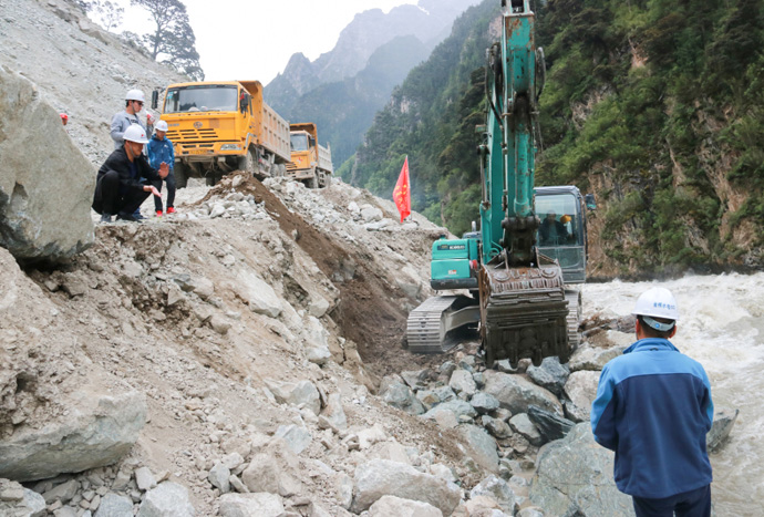 截至7月8日12時(shí),地方政府和我公司及各參建單位共組織投入裝載機、挖掘機、工程車(chē)等機具200多臺次,投工投勞800余人次。在地方政府的大力支持下、在金橋支部黨員突擊隊的帶動(dòng)下、在所有搶修人員的共同努力下,嘉黎縣至金橋水電站公路已基本搶通,電站建設的物資陸續運至現場(chǎng),當地群眾生活車(chē)輛緩慢通過(guò),沿途經(jīng)過(guò)的貨運車(chē)輛、越野車(chē)輛紛紛減速鳴笛向飄揚的共產(chǎn)黨員突擊隊隊旗致敬,向所有參與搶修公路的人員致謝。