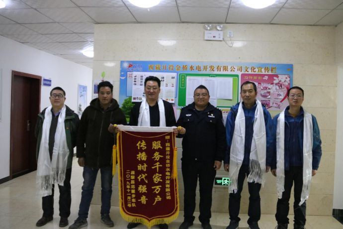 12月4日,尼屋鄉派出所副所長(cháng)多吉帶領(lǐng)尼屋鄉扶貧車(chē)隊代表將“服務(wù)千家萬(wàn)戶(hù) 傳播時(shí)代強音”錦旗遞送到西藏開(kāi)投金橋水電開(kāi)發(fā)有限公司(以下簡(jiǎn)稱(chēng)“金橋公司”)副總經(jīng)理李輝手中,表達對金橋公司的深深謝意。