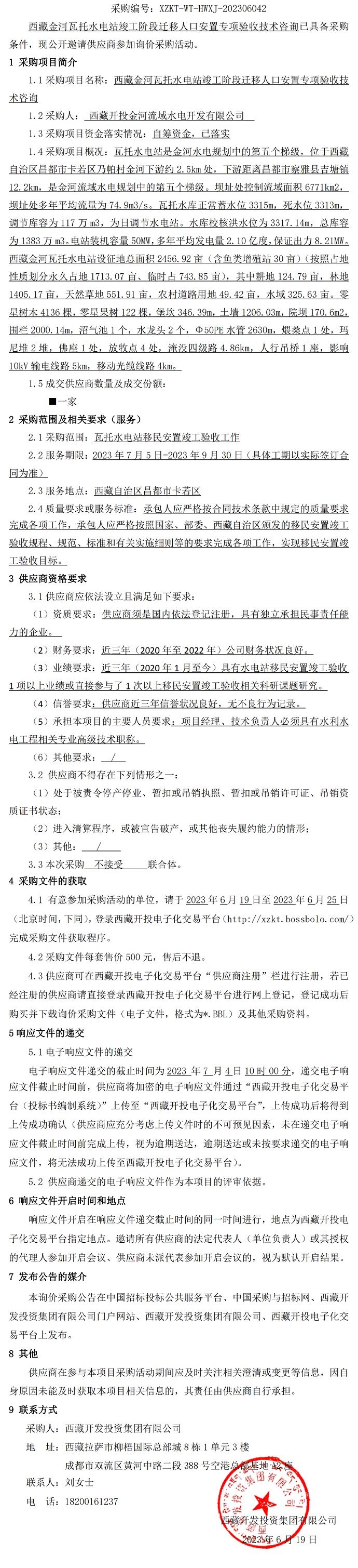 西藏金河瓦托水電站竣工階段遷移人口安置專(zhuān)項驗收技術(shù)咨詢(xún)詢(xún)價(jià)采購公告