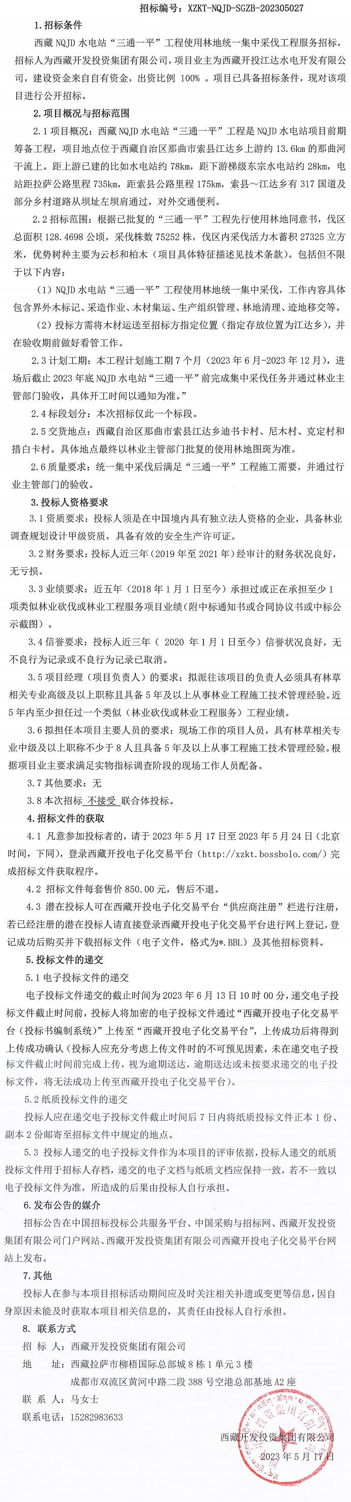 西藏NQJD水電站“三通一平”工程使用林地統一集中采伐