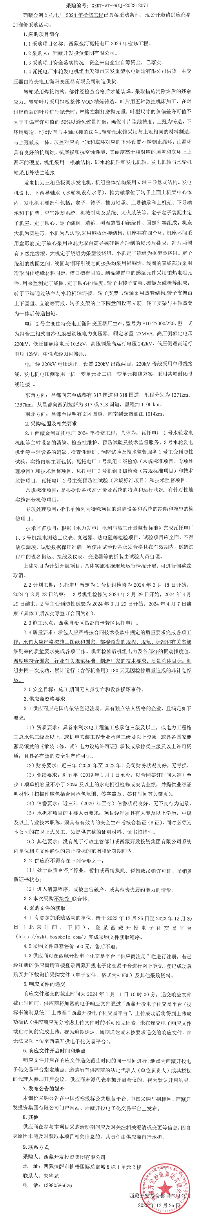 西藏金河瓦托電廠(chǎng)2024年檢修工程
