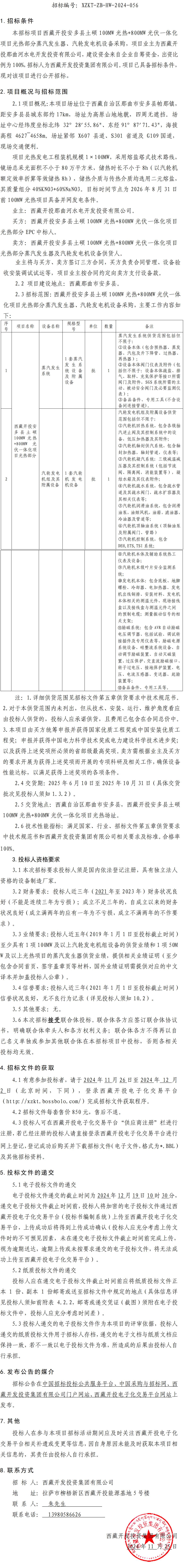 西藏開(kāi)投安多縣土碩 100MW 光熱+800MW 光伏一體化項目光熱部分蒸汽發(fā)生器、汽輪發(fā)電機設備采購招標公告