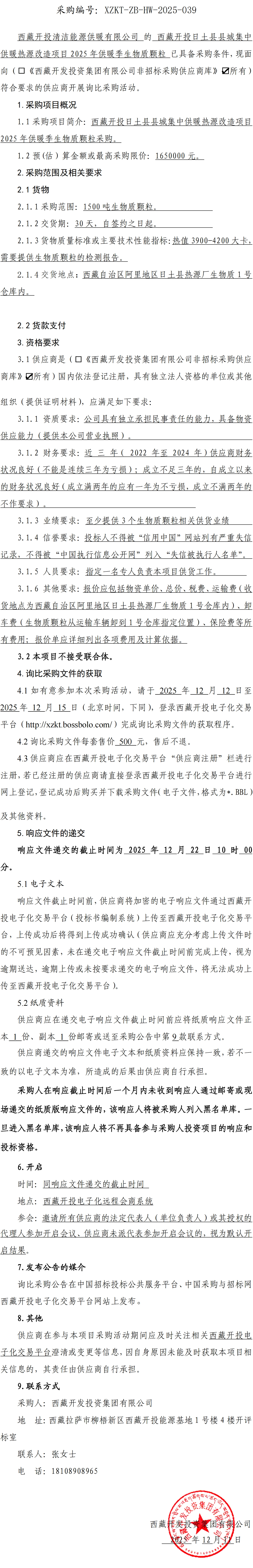 西藏開(kāi)投日土縣縣城集中供暖熱源改造項(xiàng)目2025年供暖季生物質(zhì)顆粒詢(xún)比采購(gòu)公告